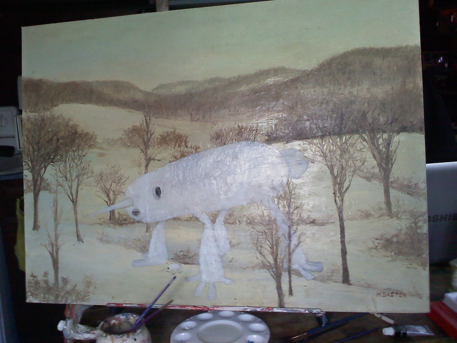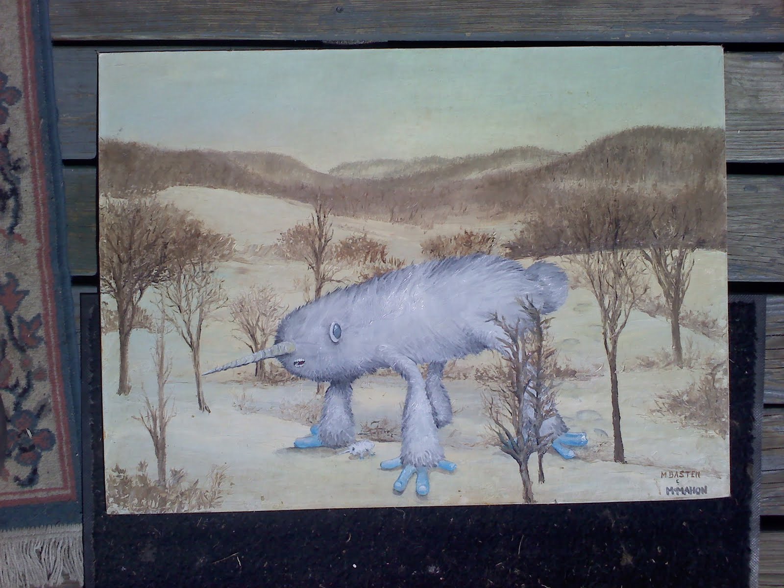 Just got a new landscape painting from my girlfriend. That makes three that are waiting in the wings. Must focus my attention on the oil seascape I got from a friend. My first oil collaboration was the Sub-Arctic Land Narwhal (coming soon!), and feel like I have a better understanding of how to make...alterations...in that particular medium.