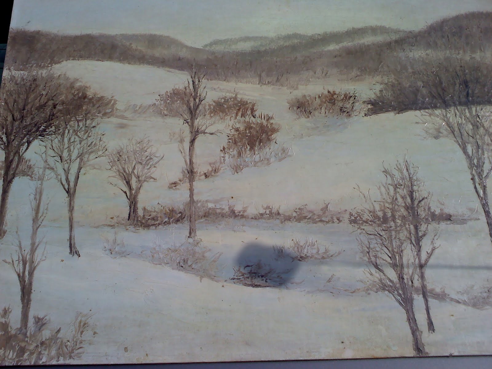 Here I'm showing the process. This one I worked on a little differently than I would acrylics (or even other oil paintings), but I decided to switch it up since the original landscape was predominantly white(ish).